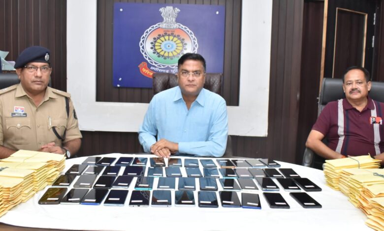 दुर्ग। जिले में गुम मोबाईल के संबंध में लगातार मोबाईल गुमने की रिपोर्ट प्रार्थियो द्वारा थानो में दर्ज कराई जा रही है। जिससे वरिष्ठ पुलिस अधीक्षक दुर्ग विजय अग्रवाल ने गुम मोबाईलो की पतासाजी कर प्रार्थियो के सुपुर्द करने हेतु निर्देश प्राप्त हुए थे। जिसके परिपालन में एन्टी क्राईम एण्ड सायबर यूनिट एवं जिला दुर्ग के थाना प्प्रभारियों के नेतृत्व में एन्टी क्राईम एण्ड सायबर यूनिट एवं थाने की टीम को गुम हुये मोबाईलों को खोजकर संबंधित मोबाईल स्वामियों को वितरण करने हेतु लगाया गया। वरिष्ठ अधिकारियों के निर्देशानुसार वर्ष 2024-2025 के गुमे हुये मोबाईलों से संबंधित आवेदन पत्रों के आधार पर अभियान चला कर मेहनत एवं लगन से एन्टी क्राईम एण्ड सायबर यूनिट टीम द्वारा दुर्ग, भिलाई, राजनांदगाँव, बालोद, बेमेतरा एवं रायपुर क्षेत्रों में चल रहे कुल 201 नग विभिन्न कंपनियों के मोबाईलों जुमला कीमती तकरीबन 41 लाख रूपये का बरामद किया गया।