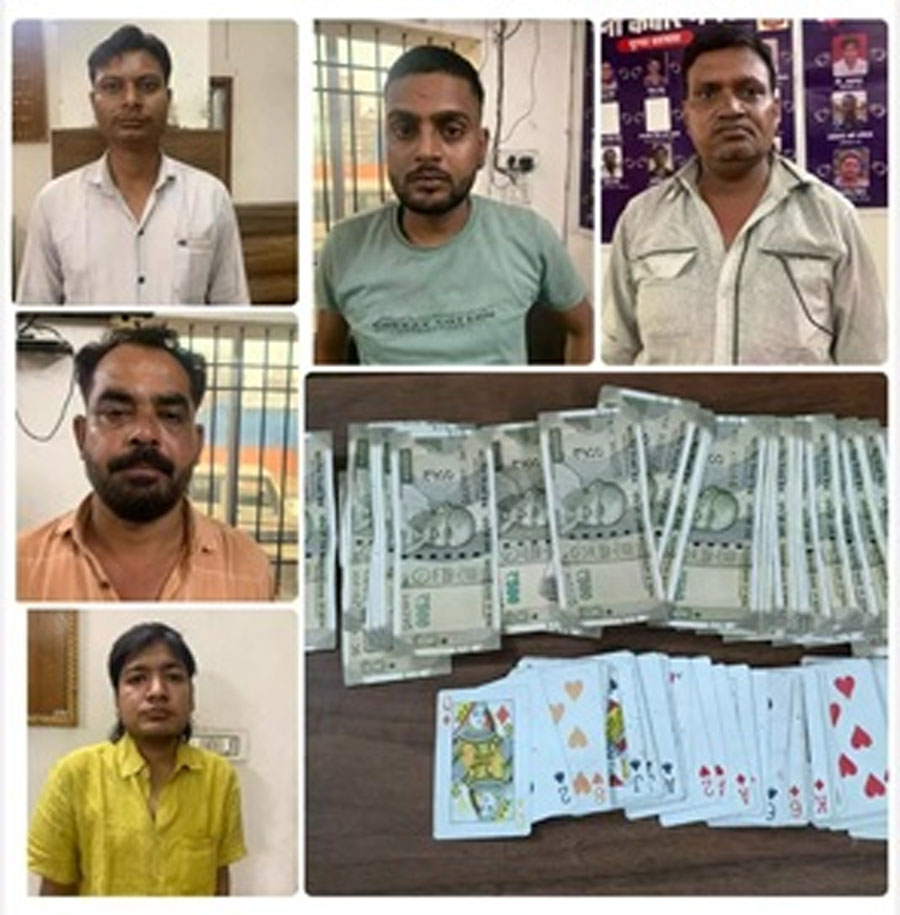 इसी तारतम्य में थाना कबीर नगर पुलिस को सूचना प्राप्त हुई कि गोल चौक के पास कबीर नगर में कुछ व्यक्ति जुआ खेल रहे हैं, कि वरिष्ठ अधिकारियों के निर्देशन व थाना प्रभारी कबीर नगर के नेतृत्व में थाना कबीर नगर पुलिस की टीम द्वारा उक्त स्थान पर जाकर रेड कार्यवाही व घेराबंदी कर जुआ खेलते 5 जुआरियों को गिरफ्तार कर उनके कब्जे से कुल नगदी रकम 16,000/- रुपए, 52 पत्ती ताश जप्त कर जुआरियों के विरूद्ध थाना कबीर नगर में अपराध क्रमांक 220/24 धारा छ.ग. जुआ प्रतिषेध अधिनियम 2022 की धारा 3(2) का अपराध पंजीबद्ध कर कार्यवाही किया गया।