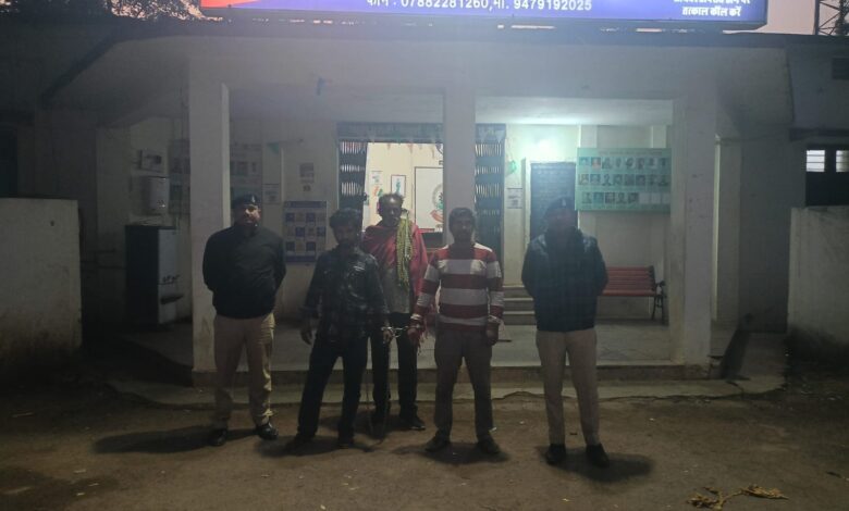 मामले का सक्षिप्त विवरण इस प्रकार है, कि वर्तमान में प्रतिबंधित अवैध हथियार (चाकू झुरी, तलवार, कटर व अन्य) के बड़ते अपराधो की रोकथाम हेतु चालाये जा रहे अभियान के दौरान अपराध नियंत्रण हेतु किये जा रहे पेट्रोलिग के दौरान थाना मे पुरानी भिलाई पुलिस को सूचना प्राप्त हुई की *कुछ लोग इंजीनिंग पार्क के पास हथखोज बस्ती मे लाठी डण्डा व चाकू से मारपीट कर रहे है, जिस पर पुलिस सूचना प्राप्ति के त्वरित बाद घटनास्थल पहुंची जहाँ से आरोपी मौका पाकर फरार हो गये मारपीट में मुर्तजरो को गंभीर चोटे आई थी जिस पर थाना पुरानी भिलाई में* अप.क. 453/2025 धारा 191(2),296,119(1),351(3), 109,118 (1) बीएनएस *पंजीबद्ध कर फरार आरोपीयो की गिरफ्तारी हेतु थाना पुरानी भिलाई की टीम व्दारा पता तलास के दौरान* फरार आरोपीयो को मुखबीर लगाकर *मुखबीर की सूचना पर आरोपी 1. मो० दिलकश* पिता मो० जाविर उम्र 25 साल, *2. मो० लाडले अली* पिता मो० जाविर बली उम्र 20 साल, *3. मो० जाबिर अली* पिता स्व. अब्दुल अजीज उम्र 50 साल , 03 आपचारी बालको सभी रहने वाले सेक्टर 11, जोन01 खुर्सीपार, हॉल पता शीतला पारा हथखोज थाना पुरानी भिलाई *को घेराबंदी कर पकड़ा गया। जिनसे पुछताछ करने व तलासी लेने पर आरोपयो के कब्जे से एक धरदार चाकु, एक लकड़ी का बेसबल्ला, बास का व अन्य लकडी के डण्डे मिले, जो एक बड़ी घटना को कारित करना चाहते थे पुलिस को मिली सूचना पर त्वरित घटना स्थल पहुँचने पर से आरोपी घटना के बीच से ही भाग खण्डे हुए। जिससे पुलिस की तत्परता से एक बड़ा जघन्य अपराध घटित होने रोका जा सका । एवं फरार आरोपीयो को 24 घण्टे के अंदर पकडने मे सफलता प्राप्त हुई। एवं अपराध में विधिअनुसार उचित कार्यवाही कर 03 आरोपीयो को गिरफ्तार कर माननीय न्यायालय रिमाण्ड पर भेजा गया है, 03 आपचारी बालको को किशोर न्यायालय मैं पेश किया गया है।