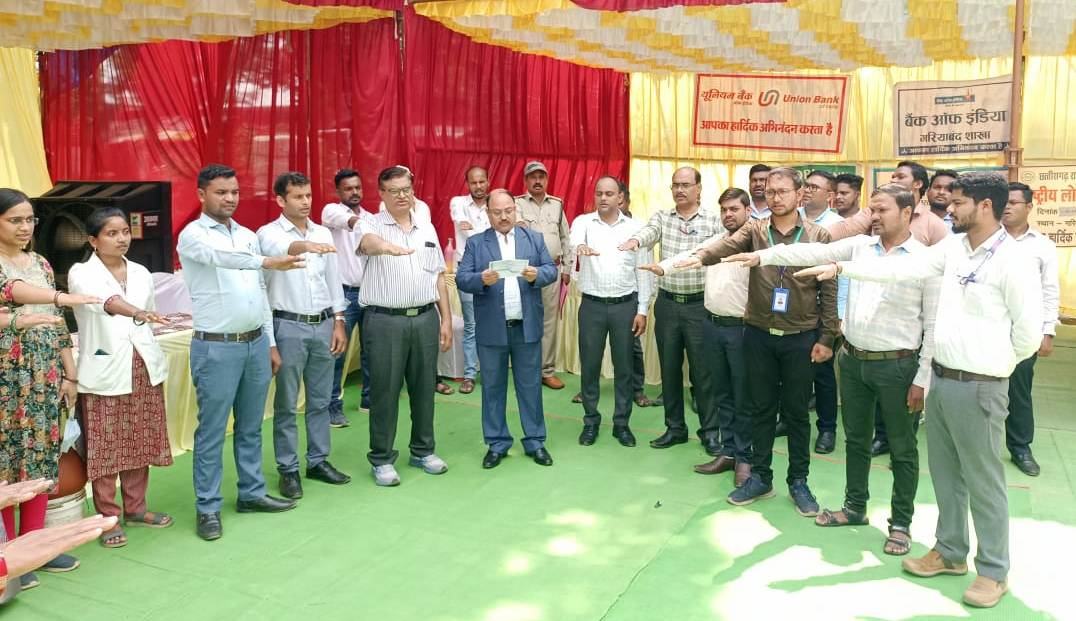 उन्होंने हर वर्ष 100 घंटे यानी हर सप्ताह 2 घंटे श्रमदान करके स्वच्छता के संकल्प को चरितार्थ करने, गंदगी नहीं करने और न ही किसी को करने, गांव-गांव, गली-गली में स्वच्छता रखने की शपथ दिलाई। उक्त कार्यक्रम में अग्रणी बैंक प्रबंधक मोहम्मद मोफिज एवं सभी बैंक शाखा प्रबंधक, विभागीय अधिकारी-कर्मचारी उपस्थिति थे।