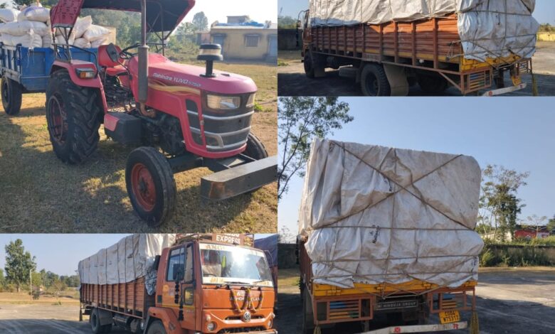 सबसे बड़ा माल एक मिनी ट्रक (1109) में मिला—जिसमें 200 बोरी धान भरा था।