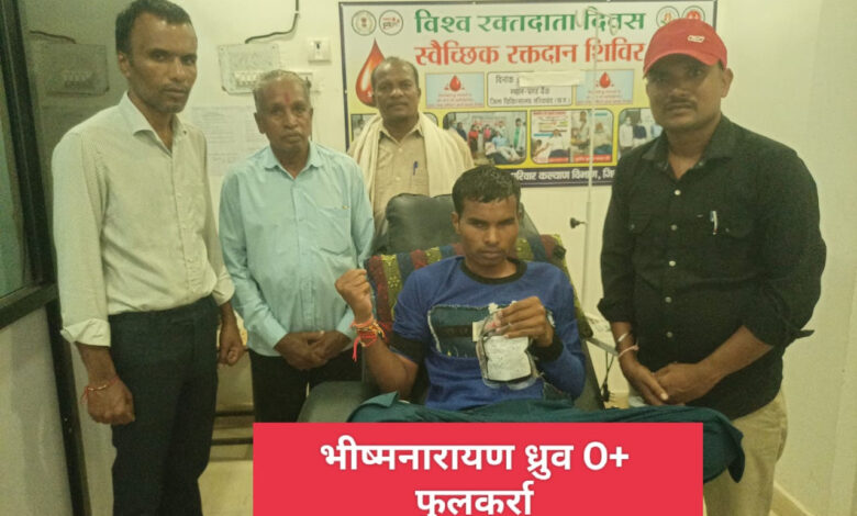 दोनो आंख से अंधा युवक भीष्मनारायण ध्रुव ने अपनी मां के लिए किया रक्तदान