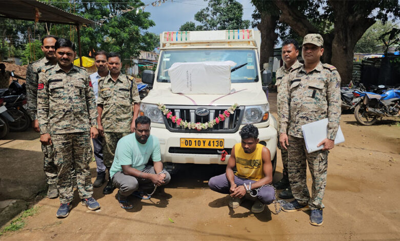 इसी दौरान मुखबीर के बताये अनुसार सफेद कलर के महेन्द्रा कम्पनी का बोलेरो पीकप वाहन कमांक OD 10 Y 4130 में दो व्यक्ति चेक पोस्ट में पहुंचे, जिसे पुछताछ करने पर अपना नाम तपन खोसला, सुरज मतरा जिला कोरापुट उडिसा का रहने वाला बताये जिसके बाहन की चेकिंग करने पर पीकप वाहन के खाली ट्राली के निचे चेचिस में अलग से बनाये स्पेशल चेम्बर के अदर छुपा कर रखा हुआ भूरे रंग के सेलोटेप से पैक किया हुआ 17 पैकेट अवैध मादक पदार्थ मांजा कुल वजन 36.240 किलोग्राम गांजा प्राप्त हुआ, जिसका कीमत करीबन 362400 सौ रूपये एवं पीकप वाहन कमाक- OD 10 Y 4130 किमती लगभग 05 लाख कुल किमती 862400 रुपए को विधिवत जप्त कर आरोपीगणों के विरुद्ध एनडीपीएस एक्ट के तहत कार्यवाही कर आरोपी तपन खोसला पिता मंगलदान खोसला जाति उम्र 28 वर्ष निवासी कुन्डार थाना काकरीगुमा जिला कोरापुट उडिसा, सुरज भतरा पिता विजय भतरा जाति भतरा उम्र 28 वर्ष निवासी चारडा JELC चर्च के पास थाना काकरीगुमा जिला कोरापुट उडिसाको 25 सितम्बर को 20:10, 20.20 बजे विधिवत गिरफ्तार किया गया।