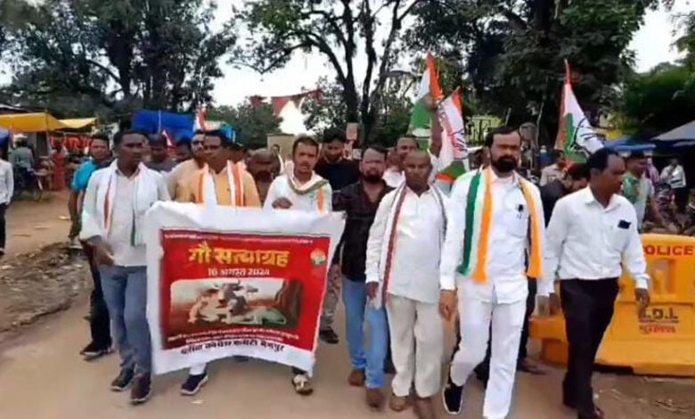 सैकड़ो कांग्रेस कार्यकर्ता बिन्द्रनवागढ़ विधानसभा क्षेत्र के MLA जनक ध्रुव, जिला पंचायत उपाध्यक्ष संजय नेताम के नेतृत्व में गौ – सत्याग्रह के तहत रैली निकाली। रैली में सैकड़ो की संख्या में मवेशी रैली के आगे-आगे चल रहे थे और मवेशियों को हाकते हुए कांग्रेस के MLA और कांग्रेस कार्यकर्ता सीधे एसडीएम कार्यालय में घुस गए। सैकड़ो की संख्या में मवेशियों को लेकर एसडीएम कार्यालय पहुंचे कांग्रेस कार्यकर्ताओं ने जमकर नारेबाजी किया और प्रदेश के भाजपा सरकार के खिलाफ विरोध प्रदर्शन किया। कांग्रेस के दोनो नेताओ ने राज्य सरकार के खिलाफ जम कर हल्ला बोला।