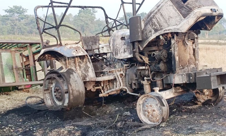 ब्रेकिंग : धान मिंजाई करते ट्रेक्टर के लगी भीषण आग, ट्रेक्टर जलकर हुआ राख