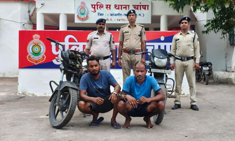 चांपा पुलिस ने चोरी के मोटरसाइकिल के साथ 2 आरोपियों को किया गिरफ्तार