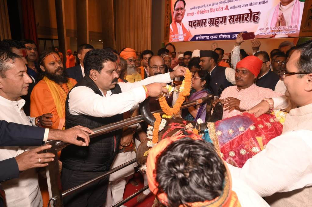 रायपुर। छत्तीसगढ़ राज्य गौ सेवा आयोग के नवनियुक्त अध्यक्ष विशेषर सिंह के पदभार ग्रहण समारोह का आयोजन पं. दीनदयाल ऑडिटोरियम में आयोजित किया गया। कार्यक्रम में गौ सेवा से जुड़ी दो स्टॉल लगाए गए थे। इसमें से एक मनोहर गौशाला खैरागढ़ का गौ उत्पाद प्रशिक्षण केंद्र था, जिसका प्रतिनिधित्व गौशाला के मैनेजिंग ट्रस्टी डॉ. अखिल जैन (पदम डाकलिया) ने किया।