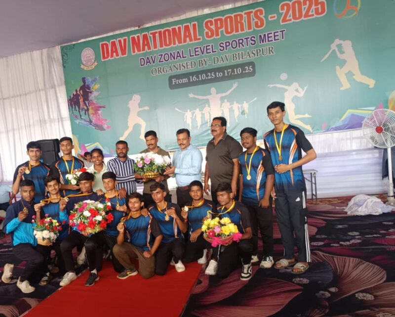 बेमेतरा:- डी ए वी नेशनल स्पोर्ट्स के राज्य स्तरीय 2 दिवसीय खेल प्रतियोगिताओं का शानदार आयोजन बसंत बिहार एस ई सी एल बिलासपुर में आयोजित किया गया है । जिसमें छत्तीसगढ़ के कुल 26 जिलों से 97 स्कूलों के लगभग 1000 छात्र-छात्राओं ने विभिन्न 32 खेलों में हिस्सा लिया।