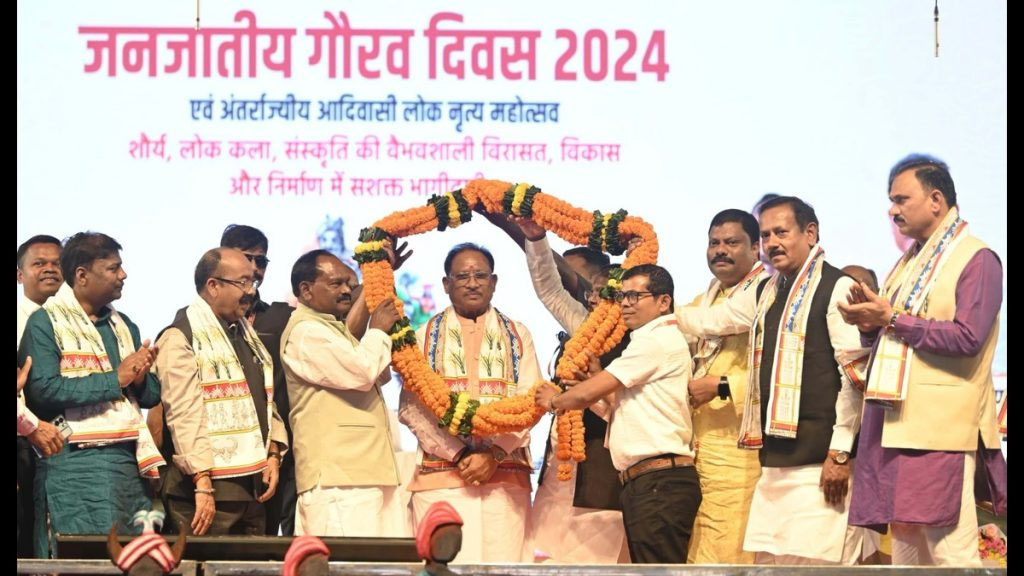 मुख्यमंत्री ने आगे कहा कि पीएम जनमन योजना के तहत विशेष पिछड़ी जनजातीय समुदाय के गांवों में बुनियादी सुविधाओं का विकास हो रहा है। प्रधानमंत्री मोदी बिहार के जमुई से कल 15 नवम्बर को जनजातीय गौरव दिवस का शुभारंभ करेंगे। उन्होंने कहा कि केन्द्र सरकार द्वारा आदिवासी गांवों के समग्र विकास के लिए धरती आबा जनजातीय ग्राम उत्कर्ष अभियान शुरू किया गया है। इसके लिए 80 हजार करोड़ रूपए का प्रावधान है। इससे छत्तीसगढ़ राज्य के 6,691 आदिवासी गांवों में बुनियादी सुविधाओं का विकास और जनजातीय समुदाय के कल्याण के काम होंगे।