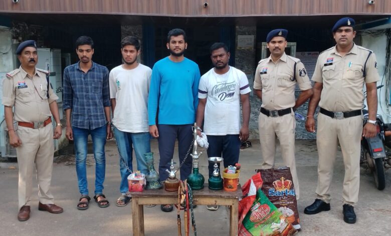 Durg Police crackdown on drug abuse: Shopkeeper and three customers caught with hookah and tobacco-containing flavorings