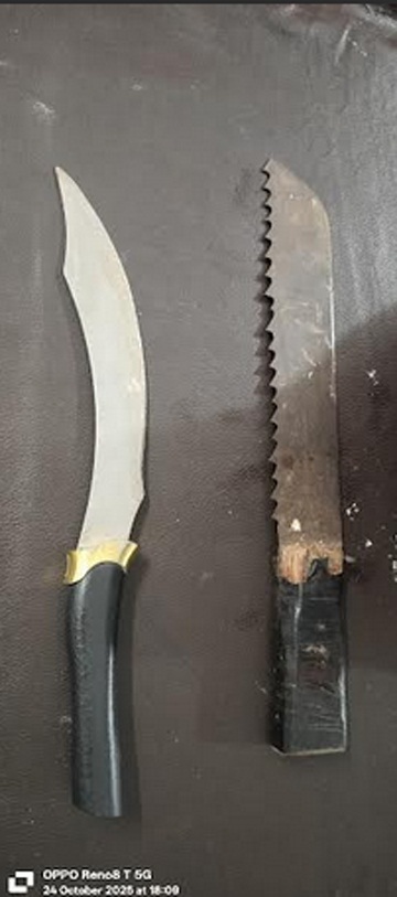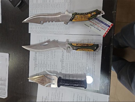 इसी क्रम में थाना पद्मनामपुर से 04 आरोपी मोहम्मद एजाज को पोटिया चौक से, इम्तियाज अहमद खान सिविल लाईन, दुर्ग, मीहित ध्रुब सुभाष नगर, दुर्ग, संजय साहू, आदर्श नगर दुर्ग से गिरफ्तार कर इनके कब्जे से धारदार हथियार बरामद किया गया है।