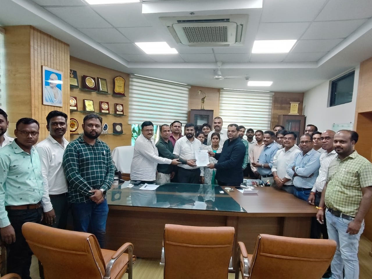 उक्त प्रतिनिधि मंडल में गरियाबंद से अमृत राव भोसले, रायपुर से डॉ देवेंद्र कुमार बंजारे, डॉ ज्योति अग्रवाल, डॉ शैलेंद्र पहाड़े, धमतरी डॉ ओमप्रकाश मत्स्य पाल, दीपेश कुमार साहू, यशवंत पटेल, रोशन कुमार, सुरेंद्र यादव, बेमेतरा से नवीन चौहान, तारकेश्वर सिंह, आशीष साहू, जानेश्वरी साहू, प्रिया, विनीत कुमार, प्रणिता बेरा, अशोक उइके, जगदीश प्रसाद कोशले, खेमराज साहू, डॉ शेलेजा कोटरिया, सहित प्रदेश ए एच एम कर्मचारी संघ के पदाधिकारी उपस्थिति थे।