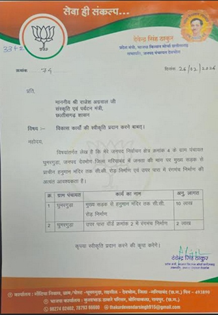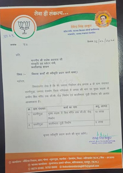 प्रदेश मंत्री श्री ठाकुर द्वारा अलग-अलग ग्राम पंचायतों के लिए भी विकास कार्यों की स्वीकृति हेतु आवेदन सौंपे गए हैं—