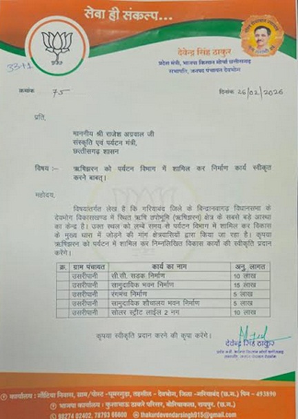 मुलाकात के दौरान श्री ठाकुर ने मंत्री को अवगत कराया कि कांदाडोंगर लगभग 40 गांवों की आस्था का प्रमुख केंद्र है। यह स्थल प्राकृतिक सौंदर्य, सांस्कृतिक विरासत और प्राचीन परंपराओं का संगम है। यहां वर्ष भर धार्मिक गतिविधियां एवं सामाजिक आयोजन होते रहते हैं। वहीं ऋषिझरन देवभोग क्षेत्र के साथ-साथ पड़ोसी राज्य ओडिशा के श्रद्धालुओं के लिए भी आस्था का महत्वपूर्ण केंद्र है। घने वनों के बीच स्थित यह स्थल तपोभूमि के रूप में प्रसिद्ध है और पर्यटन की दृष्टि से अत्यंत संभावनाशील है।