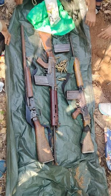 थाना मैनपुर के ग्राम बडेगोबरा के सातमारी पहाडी क्षेत्र में नक्सलियों द्वारा डम्प कर रखे 02 नग एसएलआर, 01 नग इंसास एवं 01 नग 12 बोर हथियार बरामद…