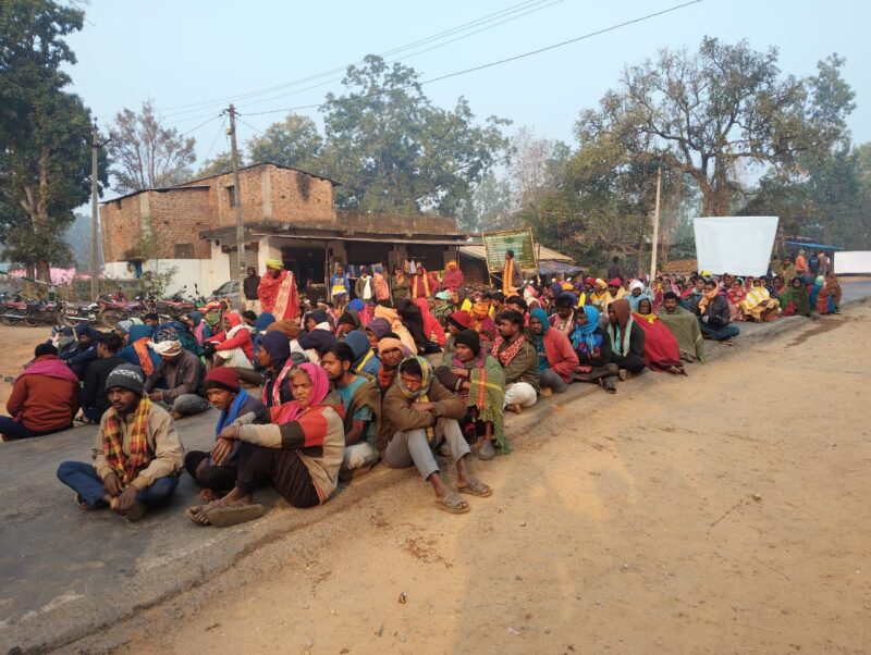 कड़कडाती ठंड में ग्रामीण सड़क पर कर रहे प्रदर्शन……