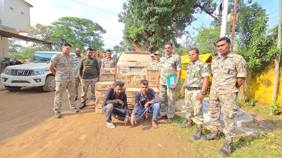 आरोपियों को गिरफ्तार करने के पश्चात फार्च्यूनर कार की तलाशी लेने पर उसकी डिक्की में रखा हुआ 28 पेटी (1400 नग) गोवा शराब कीमती 1,89,000 रुपए व फार्च्यूनर कार कीमती लगभग 20 लाख रुपए, कुल जुमला 21,89,000 रुपए जप्त किया गया। उक्त शराब की पेटियों में मध्यप्रदेश में शराब का निर्माण होना चिन्हित नजर आया।