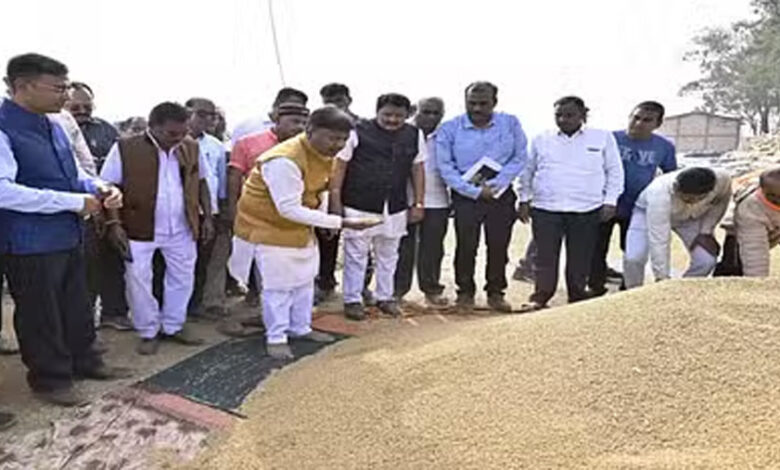 मंत्री केदार कश्यप ने अभनपुर विकासखंड के केंद्री धान खरीदी केंद्र का निरीक्षण किया
