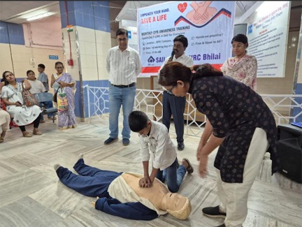 सेल– भिलाई इस्पात संयंत्र के जवाहरलाल नेहरू चिकित्सालय एवं अनुसंधान केंद्र (जेएलएनएचआरसी) के एनेस्थीसियोलॉजी विभाग द्वारा “सेव अ लाइफ” पहल के अंतर्गत ओपीडी परिसर में 02 मार्च, 2026 को हैंड-ओनली सीपीसीआर (कार्डियो पल्मोनरी सेरेब्रल रीससिटेशन) कार्यशाला का आयोजन किया गया। इस प्रशिक्षण सत्र में ओपीडी में उपस्थित रोगियों एवं उनके परिजनों को आकस्मिक हृदयाघात की स्थिति में तत्काल जीवनरक्षक सहायता प्रदान करने संबंधी आवश्यक जानकारी दी गई।