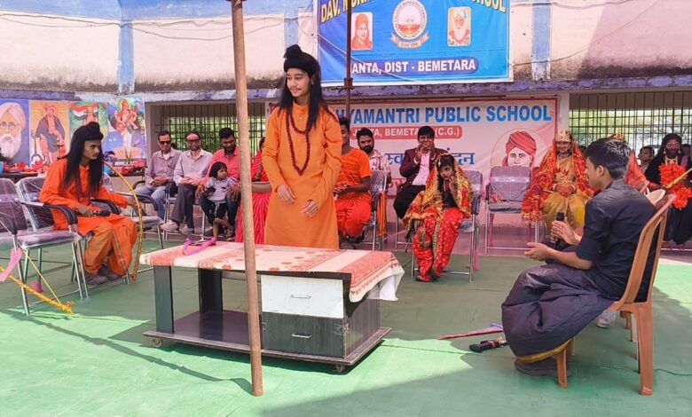 बेमेतरा:- डी ए वी जांता बेमेतरा जिले का एक मात्र डी ए वी स्कूल में नवरात्रि व दशहरा पर्व बड़े उत्साह और श्रद्धा के साथ मनाया गया। विद्यालय परिसर को रंग-बिरंगी सजावट, फूलों की माला और रंगोली से आकर्षक रूप से सजाया गया। उक्त कार्यक्रम में मुख्य अतिथि खिरामन लाल वर्मा एम आई एस प्रशासक जिला शिक्षा कार्यालय बेमेतरा विशिष्ट अतिथि चंदन कुमार प्रोग्रामर समग्र शिक्षा विभाग जिला शिक्षा कार्यालय बेमेतरा अतिविशिष्ट अतिथि जनपद सदस्य मीनाक्षी दानी चंद्राकर रहे कार्यक्रम के अध्यक्षता सरपंच पूजा देवव्रत मिश्रा ने किया। अनेकों पालकगण उपस्थित रहे जो विद्यालय के लिए के लिए गरिमामयी रही । कार्यक्रम का शुभारंभ मां नवदुर्गा, श्रीराम की साक्षी में दीप प्रज्वलन और मंत्रोच्चार के साथ हुआ। जिसने वातावरण को भक्तिमय बना दिया।