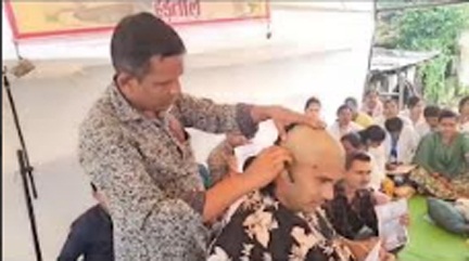 NHM Employees Union expressed their protest by shaving their heads when their demands were not met
