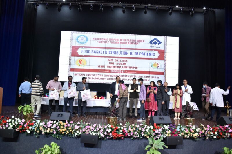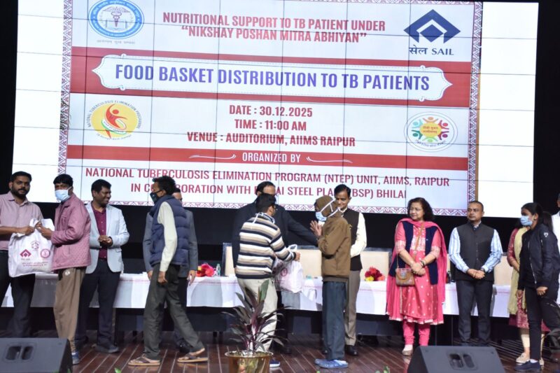 सेल- भिलाई इस्पात संयंत्र द्वारा टीबी रोग उन्मूलन एवं रोगियों के पोषण सुदृढ़ीकरण की दिशा में निक्षय पोषण मित्र अभियान के अंतर्गत टीबी रोगियों को पोषण सहायता प्रदान की गई। इस क्रम में राष्ट्रीय क्षय रोग उन्मूलन कार्यक्रम (एनटीईपी) इकाई, एम्स रायपुर द्वारा भिलाई इस्पात संयंत्र के सहयोग से विगत दिनों में एम्स रायपुर के सभागार में फूड बास्केट वितरण कार्यक्रम का आयोजन किया गया।