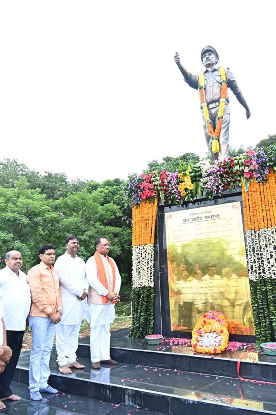रायपुर। मुख्यमंत्री विष्णु देव साय ने राष्ट्रीय वन शहीद दिवस पर राजधानी स्थित राजीव स्मृति वन पहुंचकर वन शहीदों को श्रद्धांजलि दी। उन्होंने वन शहीदों की स्मृति में वन शहीद स्मारक का अनावरण किया। मुख्यमंत्री साय सहित उपस्थित सभी ने दो मिनट मौन धारण कर वन शहीदों की शहादत को नमन किया।