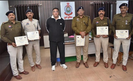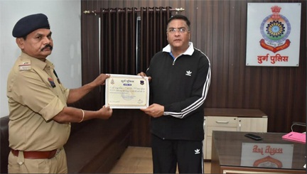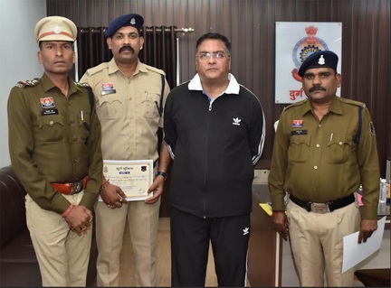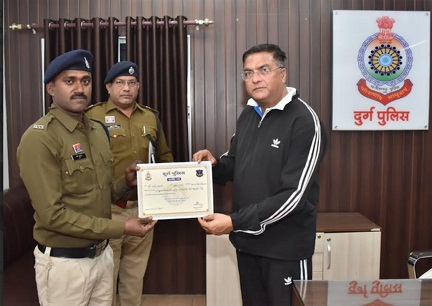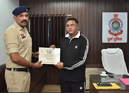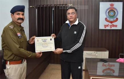वरिष्ठ पुलिस अधीक्षक, दुर्ग द्वारा प्रशस्ति पत्र देकर किया गया सम्मानित