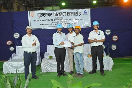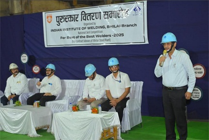 भिलाई इस्पात संयंत्र एवं इंडियन इंस्टिट्यूट ऑफ़ वेल्डर्स (आई.आई.डब्ल्यू.), भिलाई शाखा के संयुक्त तत्वावधान में भिलाई इस्पात संयंत्र के मार्स-3 विभाग में संविदा कर्मियों के मध्य संयंत्र स्तरीय “वेल्डिंग प्रतियोगिता” का आयोजन किया गया। इस वर्ष आयोजित प्रतियोगिता में कुल 173 प्रतिभागियों ने उत्साहपूर्वक भाग लिया। इस प्रतियोगिता के पुरस्कार वितरण समारोह का आयोजन 17 अक्टूबर 2025 को कार्यपालक निदेशक (संकार्य) श्री राकेश कुमार के मुख्य आतिथ्य में किया गया, जहाँ उन्होंने विजेता संविदा कर्मियों को प्रमाण पत्र एवं पुरस्कार प्रदान कर सम्मानित किया।