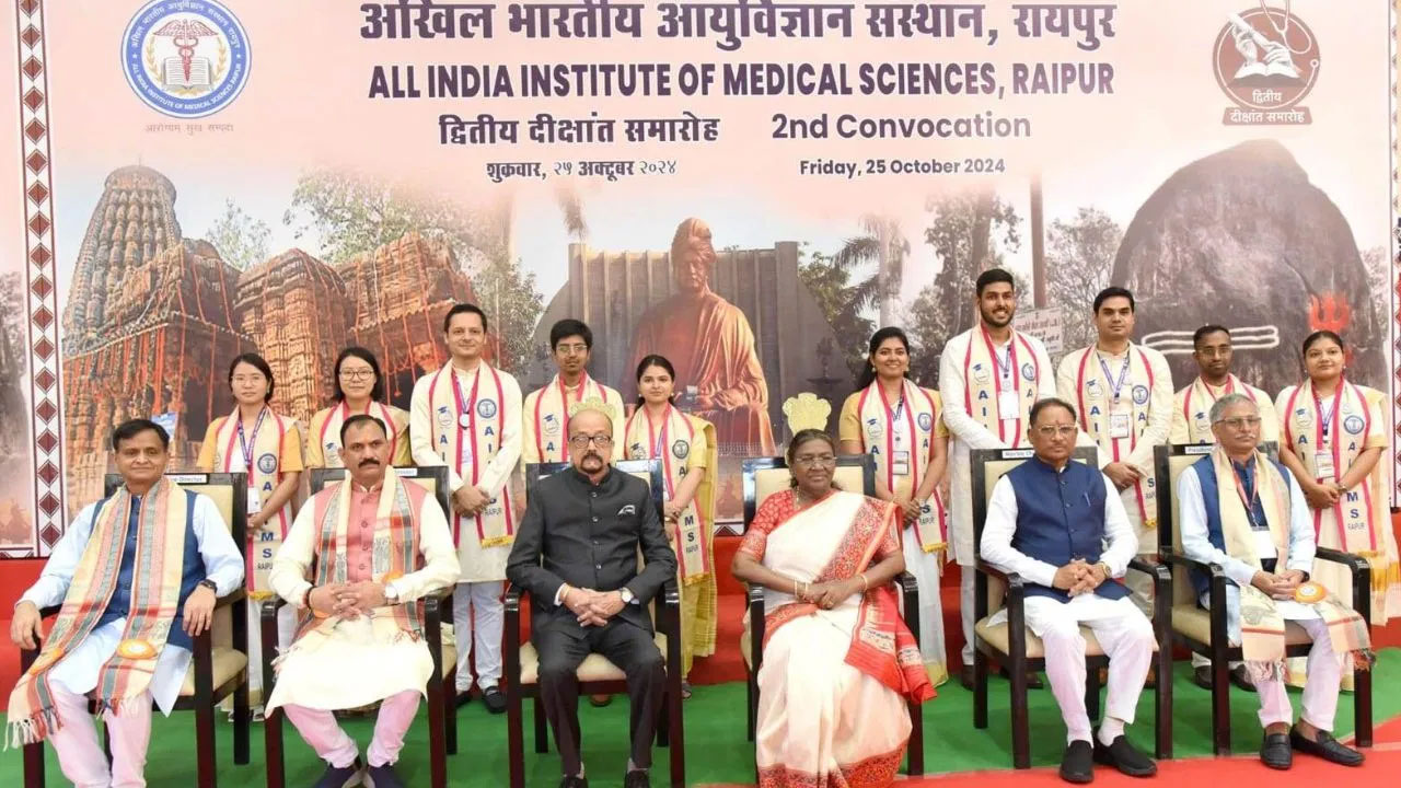 रायपुर। राष्ट्रपति द्रौपदी मुर्मु ने आज एम्स रायपुर के द्वितीय दीक्षांत समारोह में संस्थान के 10 विद्यार्थियों को स्वर्ण पदक एवं पदोपाधि तथा 514 विद्यार्थियों को उपाधि प्रदान किया। इस अवसर पर उन्होंने कहा कि मेडिकल प्रोफेशनल का कार्य अत्यंत जिम्मेदारी भरा होता है, उनके निर्णय जीवन रक्षा से जुड़े होते हैं। उन्होंने उम्मीद जताई कि यहां से उत्तीर्ण चिकित्सक एवं पैरा मेडिकल छात्र इस जिम्मेदारी और उत्तरदायित्व का निर्वहन पूरी तन्मयता और क्षमता के साथ करेंगे। उन्होंने उपाधि एवं पदोपाधि प्राप्त करने वाले विद्यार्थियों को बधाई देेते हुए उनके स्वर्णिम भविष्य की कामना की।