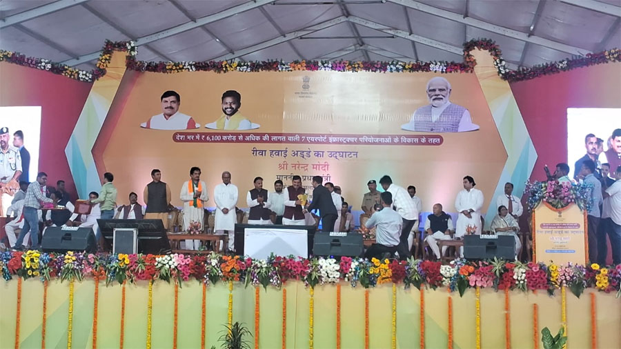 रीवा। रविवार को विंध्यवासियों के साथ ही रीवा वासियों को एक बड़ी सौगात मिली करोड़ों की लागत से बनकर तैयार हुए रीवा एयरपोर्ट की शुरुआत हो गई। देश के प्रधानमंत्री नरेन्द्र मोदी ने बनारस से वर्चुअली जुड़कर रीवा एयर पोर्ट का लोकार्पण किया रीवा एयरपोर्ट परिसर में ही भव्य लोकार्पण समारोह का आयोजन किया गया। इस समारोह में प्रदेश के मुख्यमंत्री डॉ. मोहन यादव, उप मुख्यमंत्री राजेन्द्र शुक्ल, उप मुख्य मंत्री जगदीश देवड़ा सहित कई नेता मौजूद रहे।
