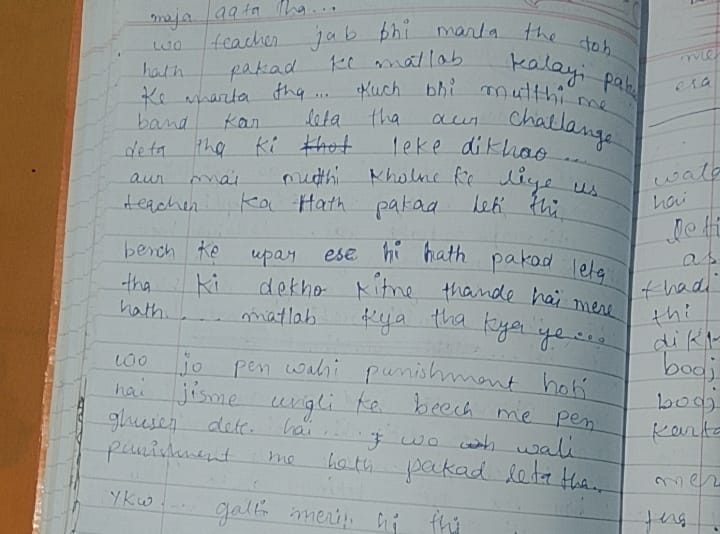 नोट में आगे लिखा है- “बेंच के ऊपर ऐसे ही हाथ पकड़ लेता था और बोलता था कि देखो कितना ठंडा है मेरा हाथ। तो कभी पनिशमेंट देने के बहाने मेरी उंगलियों के बीच में पेन डालकर जोर से दबाता था। आखिर ये सब क्या है।”
