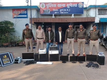 विवेचना के दौरान सुपेला पुलिस द्वारा ऐरिना कौप्टिल कार्यालय से जयंत कुमार, अरुण सरकार को पकड़कर पूछताछ करने पर करना जुर्म स्वीकार किया* ऐरिना कौप्टिल *कार्यालय से 19 नग सील गोहर पेड एवं 01 नग आफिस में लगे सीसीटीव्ही कैमरे का डीव्हीआर एवं 08 नग कम्पनी का फोटो फेम 02 नग आफिस का बेनर पोस्टर एवं 04 नग सीपीयू 05 नग मोनिटर 03 नग माउस 03 नग कीबोर्ड 03 नग प्रिटर 01 नग नोट गिनने की मशीन एवं 01-01 मोबाईल जप्त किया।