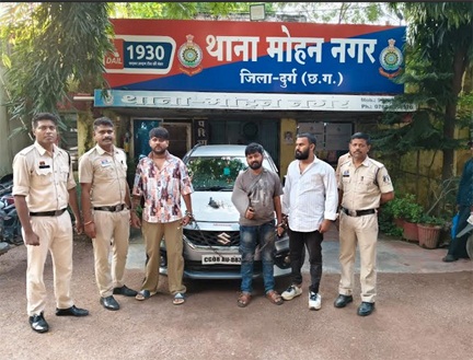 संक्षिप्त विवरण इस प्रकार है कि थाना मोहन नगर में मुखबीर से सूचना प्राप्त हुआ कि एक बलेनो कार में सवार कुछ लोग कट्टा जैसा हथियार रख कर आने जाने वालों को डरा धमका रहे हैं।सूचना को गंभीरता से लेते हुये वरिष्ठ अधिकारियो के मार्गदशन पर सूचना तस्दीक हेतु बताए स्थान धमधा रोड पुलिस थाना की टीम रवाना हुई। मौके पर बलेनो कार में सवार संदेहियों को घेरा बंदी कर पुलिस अभिरक्षा में लिया गया। तलासी लेने पर एक देशी कट्टा का पाये जाने पर संदेहियो को हिरासत मे लेकर देशी कट्टा के संबध में पुछताछ करने पर टाल मटोल करने लगे। संदेहियो के विरूद्ध पर्याप्त साक्ष्य पाये जाने से थाना मोहन नगर मे अपराध धारा 25,27 आर्म्स एक्ट का अपराध पंजीबद्ध कर आरोपियो को विधिवत् गिरफतार कर न्यायीक रिमाण्ड पर जेल दाखिल किया गया है।