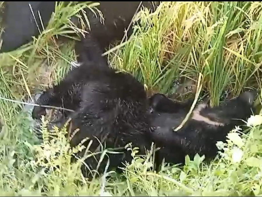 वन परिक्षेत्र के देवी नवागांव में करंट की चपेट में आने से तीन भालुओं की मौत