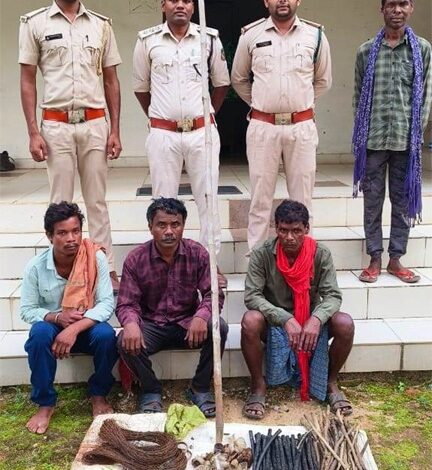 रायपुर । वन मंत्री श्री केदार कश्यप के निर्देशानुसार वन्य प्राणियों के संरक्षण और संवर्धन की दिशा में सख्त कार्रवाई करते हुए बलौदाबाजार वनमण्डल ने शिकार की एक बड़ी साजिश को विफल किया है। वनमण्डलाधिकारी बलौदाबाजार श्री धम्मशील गणवीर ने बताया कि देवपुर वन परिक्षेत्र की टीम ने 31 अगस्त 2025 की रात कसौंदी बीट में गश्त के दौरान शिकार की योजना बना रहे तीन आरोपियों को रंगेहाथ गिरफ्तार किया। ये आरोपी विद्युत जीआई तार को 11 केवी लाइन से जोड़कर वन्य प्राणियों का शिकार करने की कोशिश कर रहे थे। इन आरोपियों से मौके पर जीआई तार, दवाइयों की खाली शीशियाँ, लकड़ी की खूंटी, प्लास्टिक कवर पाइप और बांस की डांगिनी जैसी सामग्री जब्त की गई।
