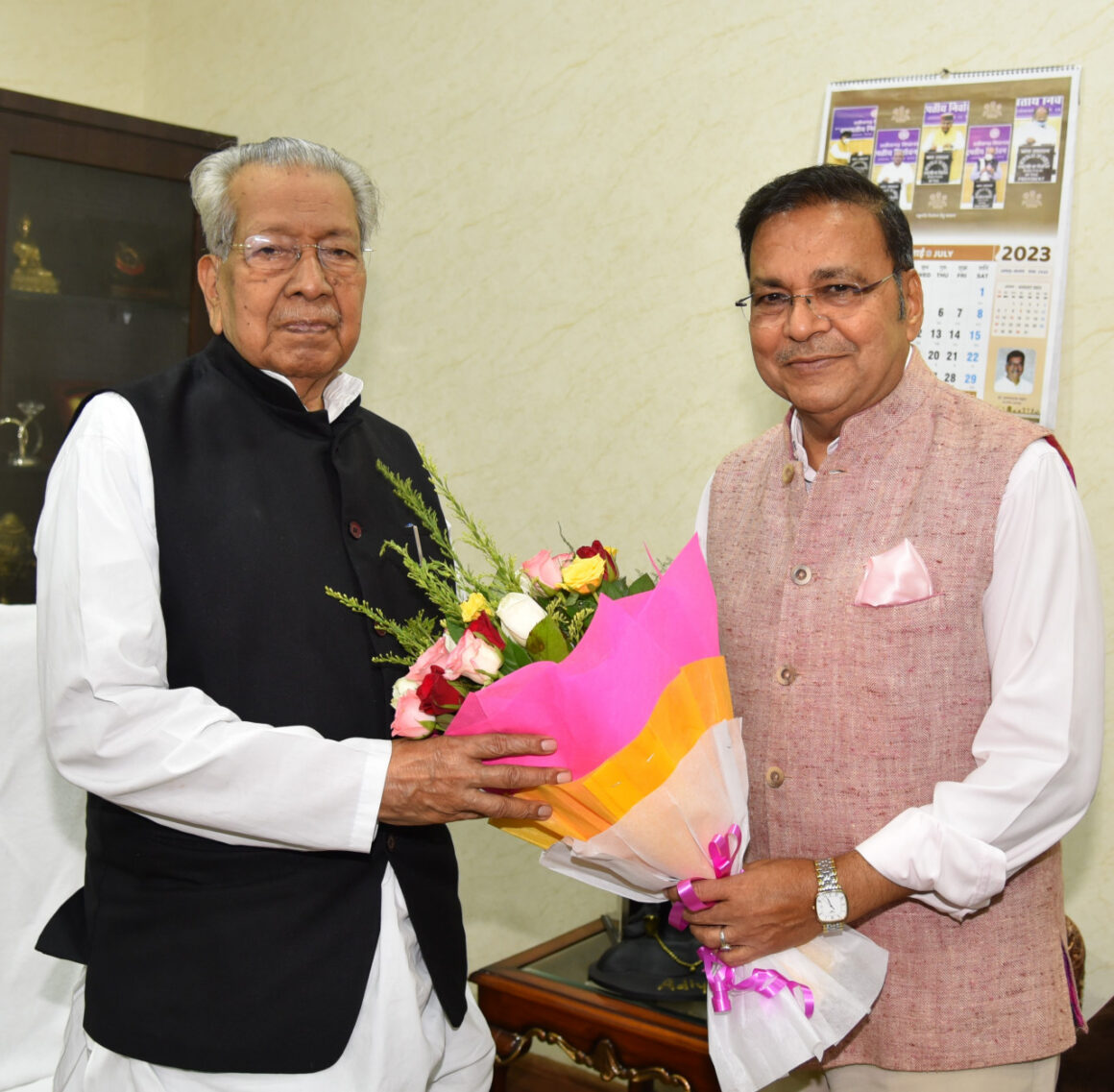 राज्यपाल विश्वभूषण हरिचंदन से आज राजभवन में छत्तीसगढ़ के उप मुख्यमंत्री एवं स्वास्थ्य मंत्री त्रिभुवनेश्वर शरण सिंहदेव ने सौजन्य भेंट की और राज्य से जुडे़ विषयों पर चर्चा की।