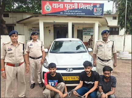 भिलाई । दिनांक 01.10.2025 को मुखबीर से सूचना मिली कि इंजीनियरिंग पार्क के पास बद्रीनाथ धर्मकांटा के पीछे वाली गली पुरानी मिलाई के पास एक सफेद रंग के हुण्डई आई औरा कार में तीन लड़के अवैध रूप से मादक पदार्थ अफीम की बिक्री कर रहे है। थाना प्रभारी पुरानी भिलाई हमराह स्टाफ, एसीसीयू टीम तथा गवाह के मुखबीर के बताये स्थान पर पहुचे। जहां पर एक सफेद रंग के हुण्डई आई औरा कार कमांक CG07 CY 6675 पुलिस की गाड़ी को देखकर सकरे गली से भागने का प्रयास करने लगे जिसे घेराबंदी कर पकड़ा गया।