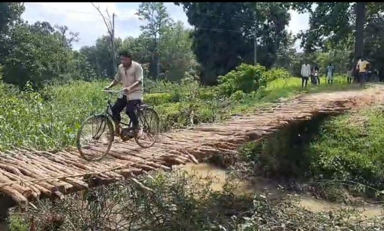 ग्रामीणों ने बनाया लकड़ी से पुल, सफर हुआ आसान