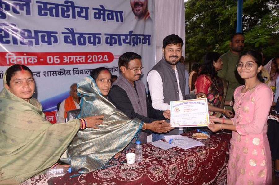 रायपुर। राज्य सरकार की पहल पर पूरे प्रदेश में मंगलवार से शुरू हुए मेगा पालक शिक्षक बैठक अभियान के तहत रायपुर जिले के सारागांव स्कूल में विधायक अनुज शर्मा और रायपुर संभाग आयुक्त महादेव कावरे शामिल हुए। बैठक में सारागांव सरकारी स्कूल में पढ़ने वाले विद्यार्थियों के पालक भी मौजूद रहे। इस बैठक में शाला के हर एक विद्यार्थी की पूरी रिपोर्ट शिक्षकों ने उनके पालकों को दी। बैठक में विद्यार्थियों की पढ़ाई-लिखाई से लेकर उनके व्यक्तित्व विकास समय प्रबंधन, आत्मविश्वास बढ़ाने से लेकर शासकीय योजनाओं से लाभ लेने तक के विषयों पर विस्तार से चर्चा की गई।